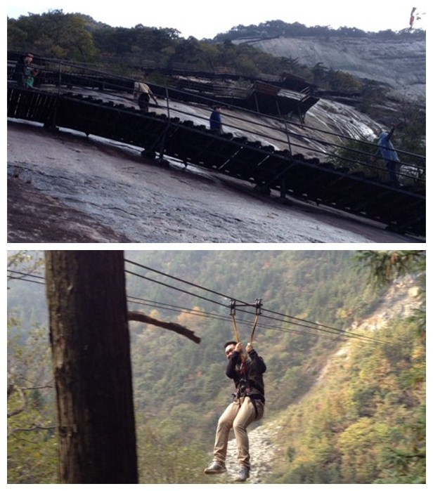 次日,在事業(yè)部總經(jīng)理王悅生的帶領(lǐng)下,市場(chǎng)部、招商部人員挑戰(zhàn)自我、峽谷飛渡,體驗(yàn)了全長(zhǎng)600米的溜索;勇攀矗立在懸崖峭壁上的白馬峰棧道,登峰頂、鳴古鐘,奏響勝利的號(hào)角。