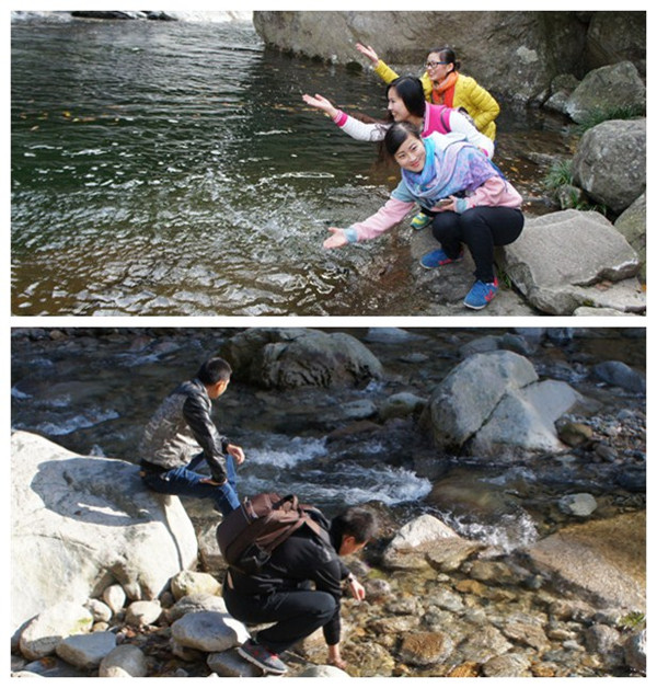 白馬大峽谷全長(zhǎng)約6公里,是淮河的主要源頭之一,更是安徽省省會(huì)合肥的水源地。隊(duì)員們?cè)诖擞H身感受清涼的水質(zhì),嘆服其清澈;或取水飲用,品嘗山泉之甘甜。見(jiàn)到如此清澈的水源,更是激勵(lì)隊(duì)員們繼續(xù)做好凈水服務(wù),將甘甜純凈的放心水送入每家每戶。